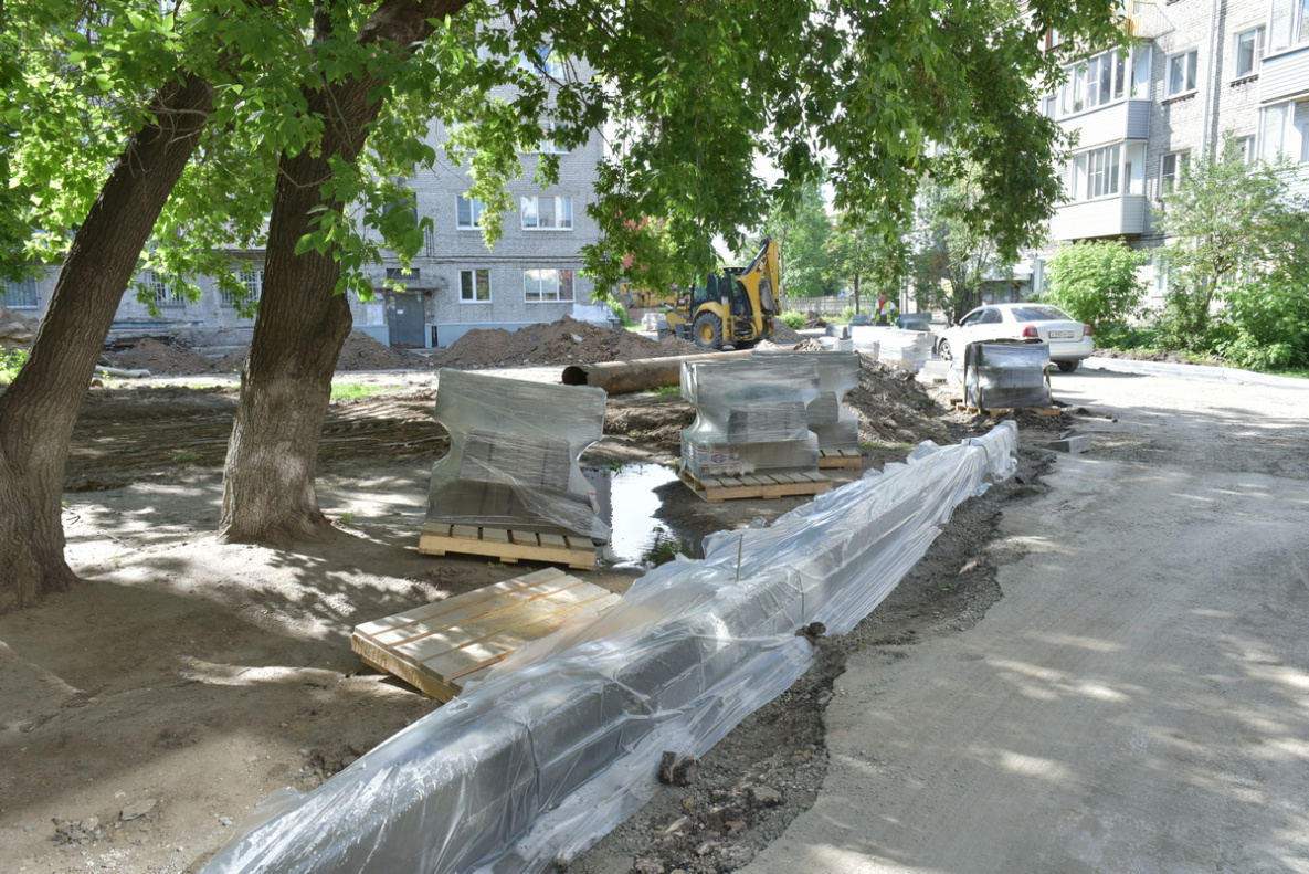 На дворовой территории домов по ул.Деповской, 34, 36 и ул.Профинтерна, 35 уже проведены подготовительные работы: демонтаж старого и частичный монтаж нового бордюрного камня, работы по устройству новой ливневой канализации. Сегодня выполняются земляные работы.