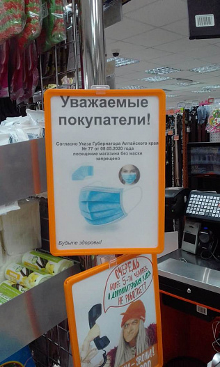 Выявлено одно нарушение - обслуживание посетителей без средств индивидуальной защиты органов дыхания. С персоналом магазина проведена разъяснительная работа. Нарушение устранено на месте - на кассе для посетителей обеспечена выдача одноразовых средств индивидуальной защиты органов дыхания.