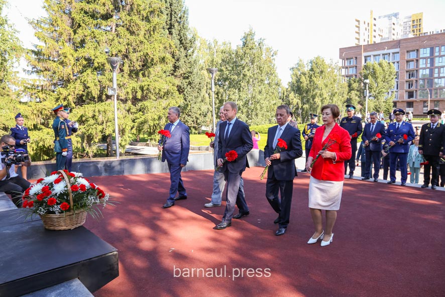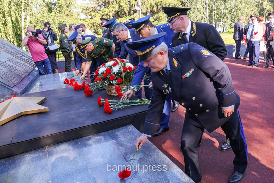 Память защитников Отечества почтили губернатор Алтайского края Виктор Томенко, глава Барнаула Вячеслав Франк, председатель АКЗС Александр Романенко, Главный федеральный инспектор по Алтайскому краю Юрий Земский, председатель городской Думы Галина Буевич, ветераны, депутаты БГД и АКЗС, руководители силовых ведомств, представители делегация Славяносербского района ЛНР, органов власти, общественных и военно-патриотических объединений, неравнодушные барнаульцы.