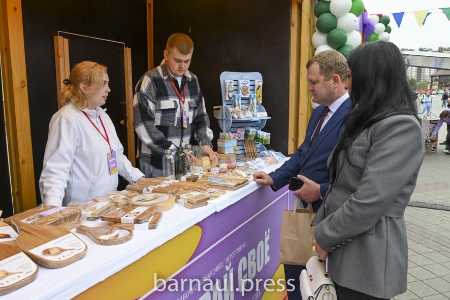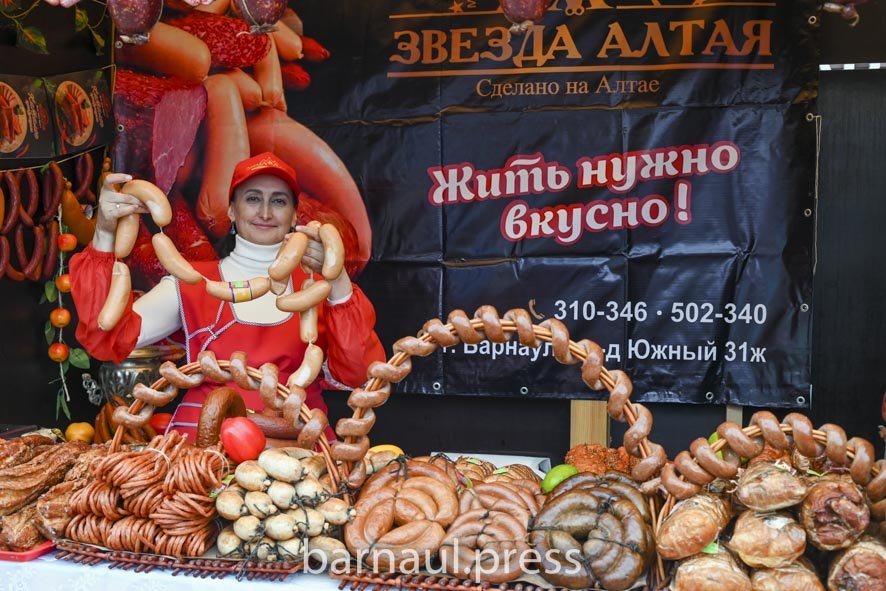 Продукцию на ярмарке представили мясоперерабатывающий завод «Звезда Алтая», Барнаульский молочный комбинат, Куяганский маслосырзавод, Барнаульская халвичная фабрика, завод «Ренессанс Косметик».