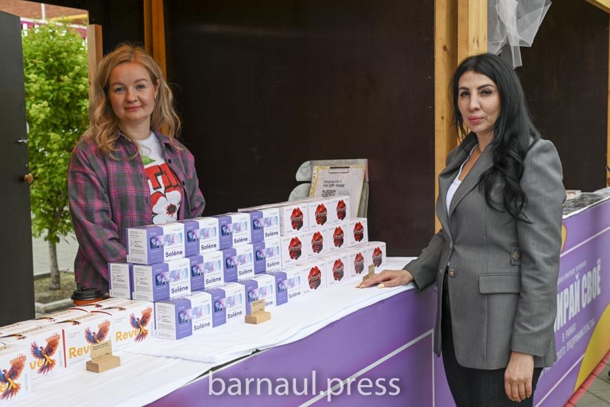 – Ярмарка проводится в рамках реализации муниципальной программы «Развитие предпринимательства и туризма в городе Барнауле» и для продвижения местных производителей, – рассказала Наталья Кротова. – Сегодня в ней принимает участие более 30 товаропроизводителей города и края, ремесленники, около 20 предприятий общественного питания. Такой формат поддержки востребован у представителей бизнеса, как для реализации продукции, так и для продвижения своего бренда. Стараемся подобрать для ярмарки такие даты, чтобы они совпадали с крупными городскими мероприятиями, привлекающими массу барнаульцев. Сегодня, например, проводится Всероссийский полумарафон "ЗаБег. РФ.". А чтобы на ярмарке было интересно всем возрастам, расширили в этом году развлекательную часть для детей, добавили игровых зон. Все призы на конкурсы обеспечили участники ярмарки.