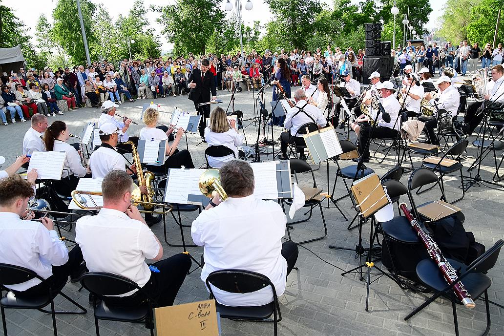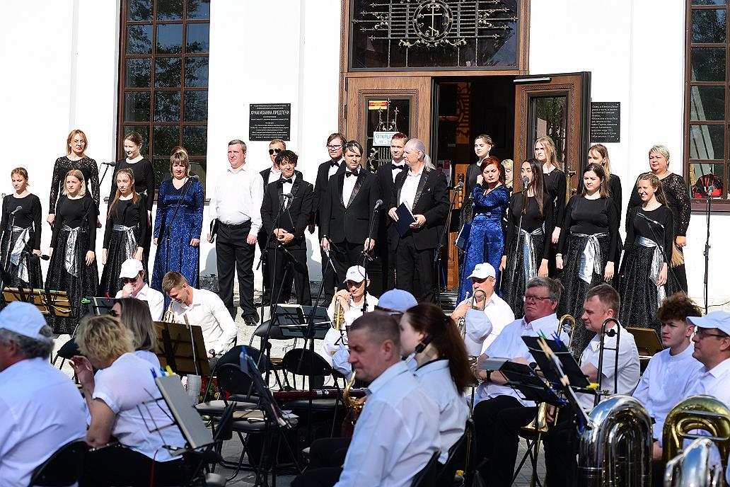 В концертной программе приняли участие симфонический оркестр и мужской вокальный ансамбль краевой филармонии, сводный хор Алтайского института культуры и Покровского собора, Барнаульский академический хор имени Александра Тарнецкого, Молодежная академическая хоровая капелла АлтГУ, Барнаульский духовой оркестр. Кроме того, перед публикой выступили солисты - лауреат международных конкурсов Надежда Гончарук (меццо-сопрано), Иван Остапенко (тенор), Антон Концеба (баритон).