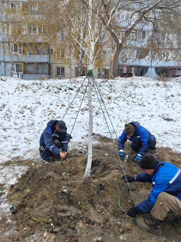МБУ «Благоустройство и озеленение» продолжают осенние виды работ, в том числе посадку деревьев и уход за ними.