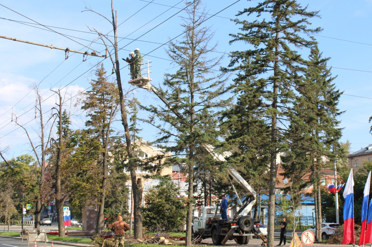 В настоящий момент уборка аварийных деревьев ведется по проспекту Ленина. Эти работы проводятся в рамках подготовки к празднованию Дня города и будут продолжены в течение недели.