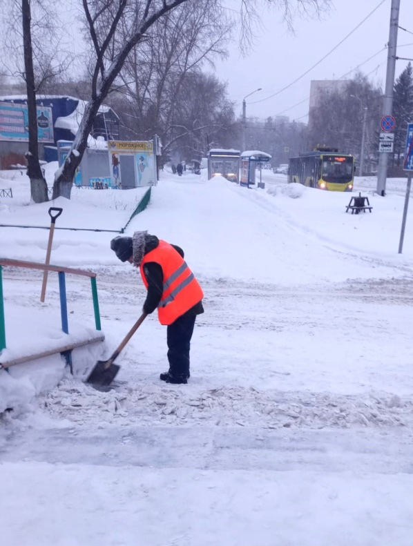 МБУ «Благоустройство и озеленение» города Барнаула ведут работы по очистке общественных территорий от снега.