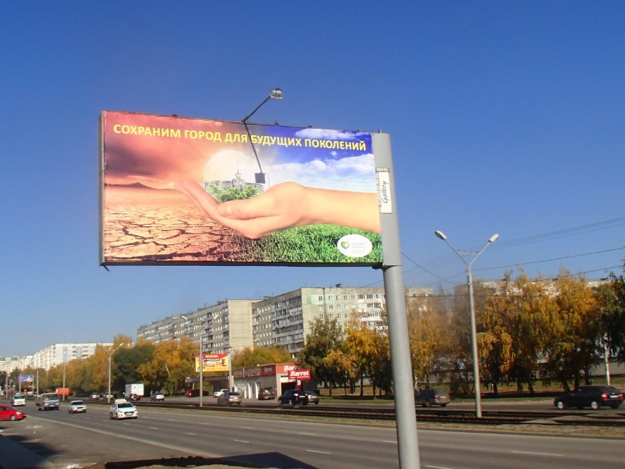 Экологическая реклама, размещенная на трассовых модулях и пилонах, впервые начала использоваться в таком формате с конца 2012 года. Ранее на территории города социальная экологическая реклама была представлена лишь баннерами в ленточном бору с надписями об опасности лесных пожаров, с призывами беречь природу.
