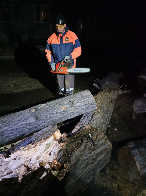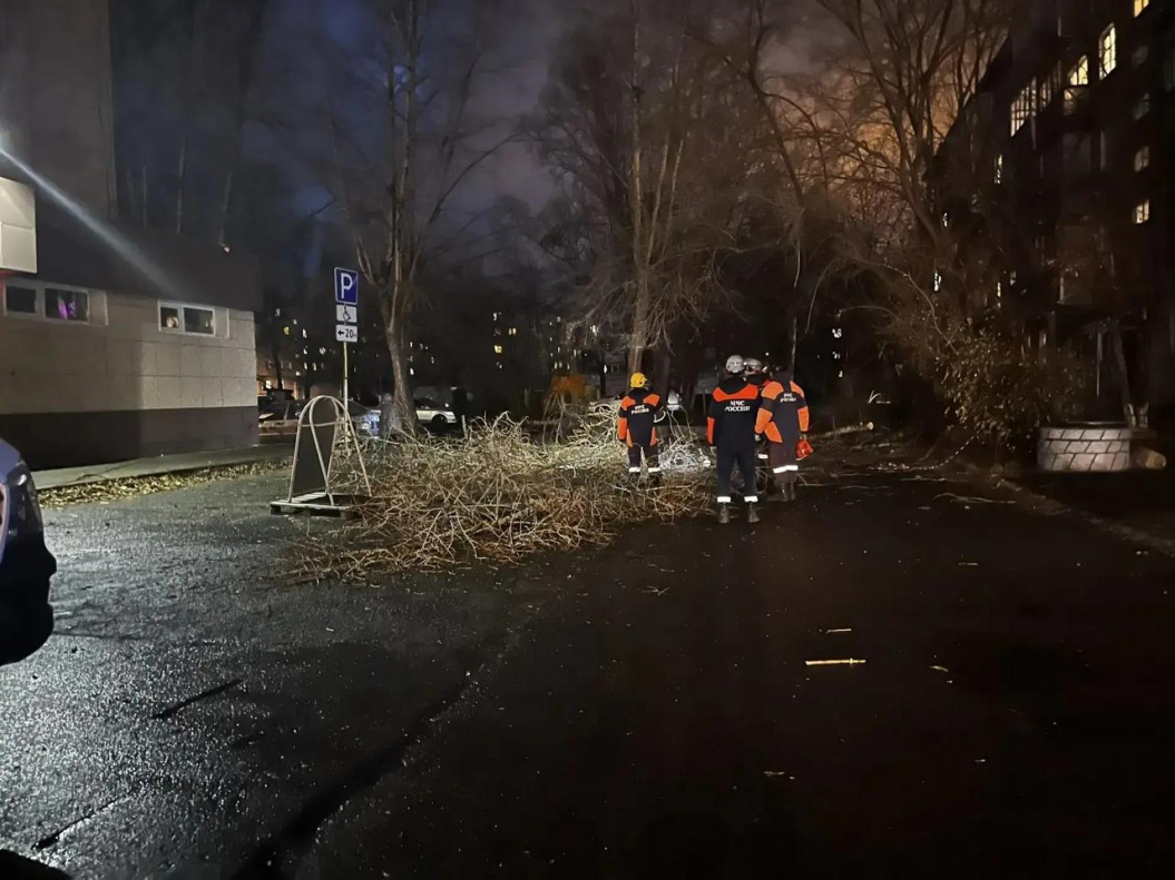 Также было зафиксировано падение двух деревьев. В результате инцидентов никто не пострадал. Сейчас деревья распилены и вывезены.