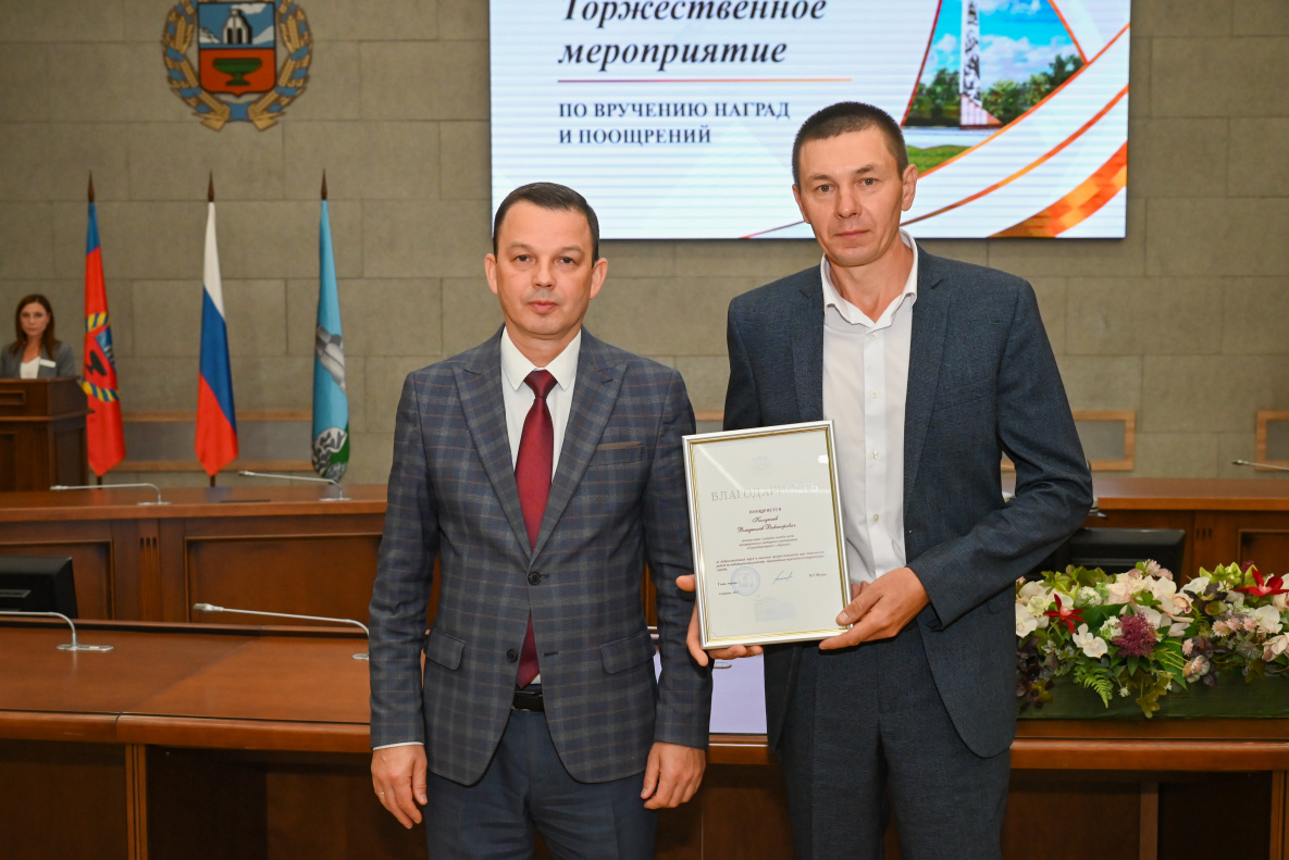 В администрации Барнаула прошло торжественное мероприятие, приуроченное к 295-летию со дня основания города, на котором наградили работников дорожно-транспортного отрасли за добросовестный труд и высокий профессионализм.