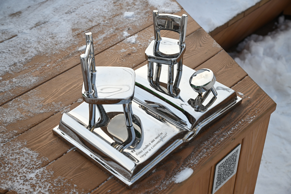 Центральным элементом каждого объекта выступает книга, на страницах которой разворачивается сюжет и приводится крылатое выражение из литературных произведений писателей.