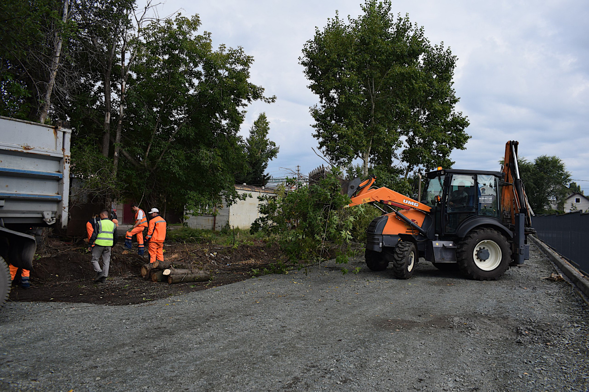 Для реализации инициативного проекта подрядная организация МБУ «Автодорстрой» проводит работы по обрезке зеленых насаждений, сносу нескольких деревьев и установке бордюров. В дальнейшем будут выполнено асфальтирование территории, площадь асфальтобетонного покрытия составит 1365 кв.метров.