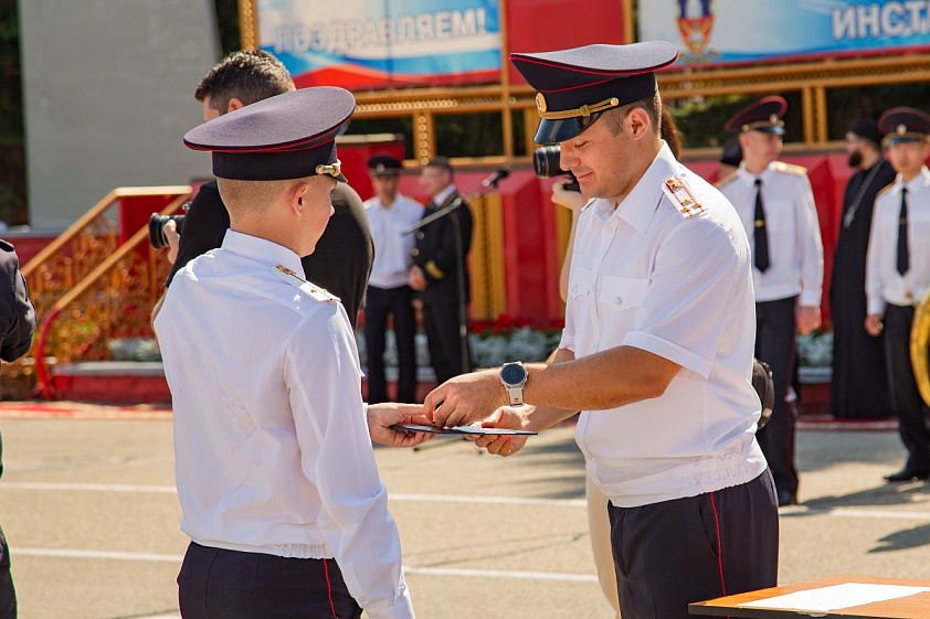 — Дорогие выпускники, вы приступаете к практической деятельности, в процессе которой вам предстоит решать сложные и ответственные задачи, возложенные на российскую полицию. В их числе — охрана общественного порядка, борьба с общеуголовной преступностью, терроризмом, экстремизмом, коррупцией. Приоритетным остаётся активное содействие Вооружённым Силам РФ в выполнении задач специальной военной операции, — обратился к выпускникам в приветственном адресе Владимир Кубышко, заместитель министра внутренних дел Российской Федерации, генерал-полковник полиции. — Благодарен руководству, профессорско-преподавательскому составу, командирам подразделений, а также нашим ветеранам и родителям выпускников за целенаправленный труд, поддержку и заботу, которые позволили вам реализовать мечту о профессии полицейского.