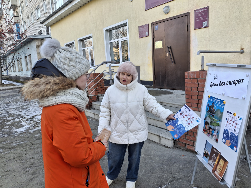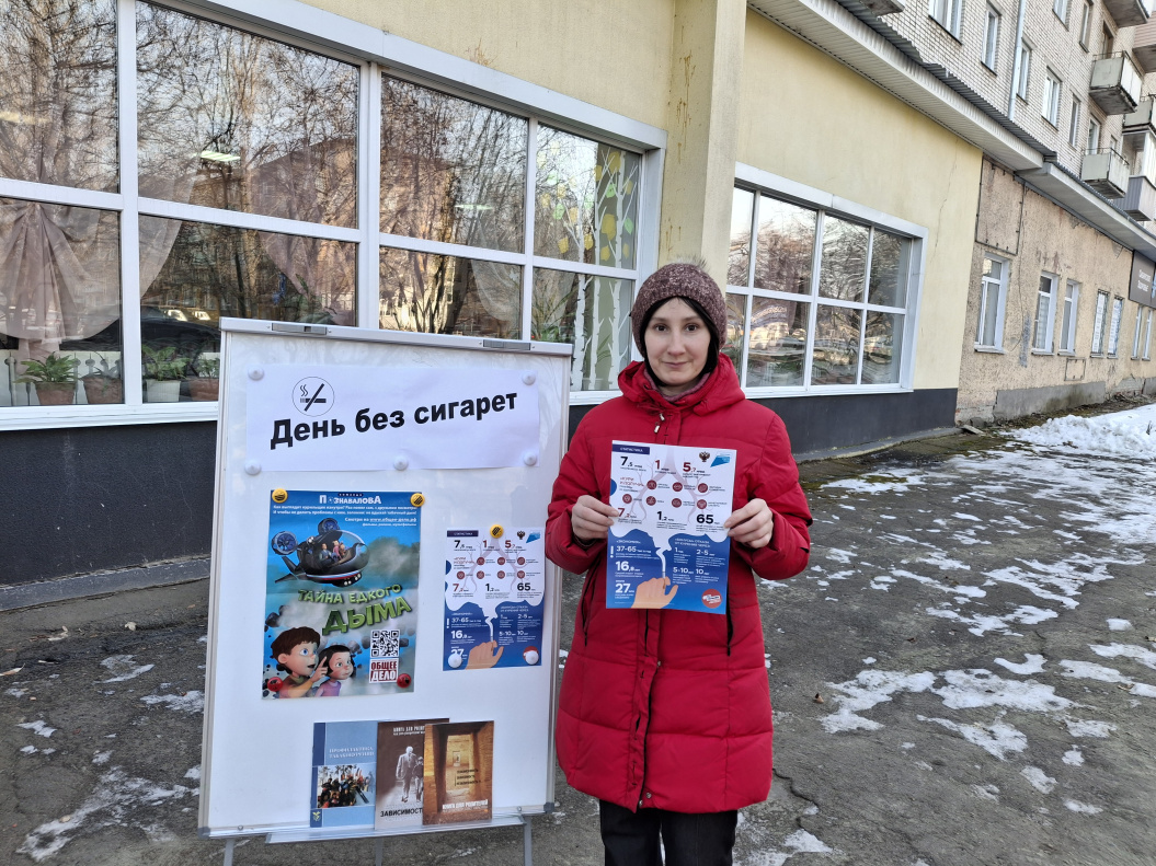 20 ноября сотрудники библиотеки №14 в рамках Международного дня отказа от курения провели акцию «День без сигарет» для жителей микрорайона Новосиликатный. Проблема эта очень актуальна, так как в России курит минимум каждая десятая женщина; заядлыми курильщиками сегодня можно назвать 50-60% российских мужчин; курение и вызываемые им заболевания ежегодно становятся причиной смерти не менее миллиона граждан России. Участникам акции напомнили о вреде курения, о пагубном влиянии никотина на организм подростка. Сотрудники библиотеки познакомили участников акции с листовками о вреде курения и призывали их вести здоровый образ жизни.