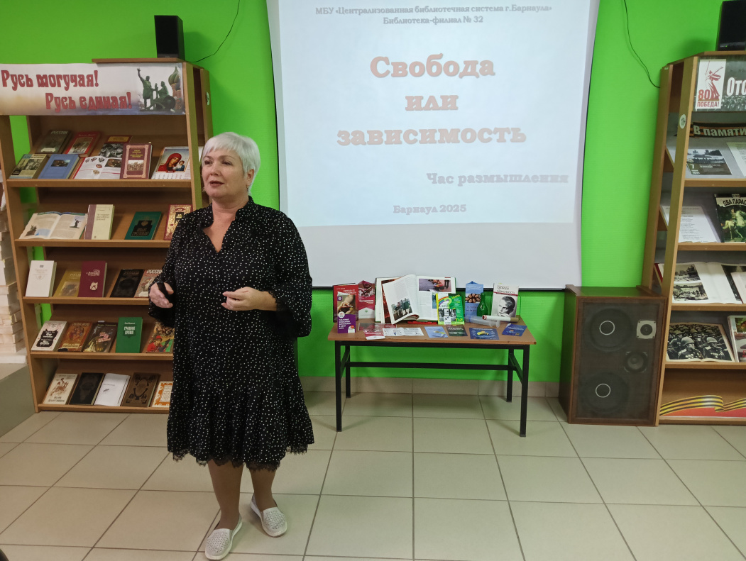 28 ноября в библиотеке №32 состоялся час размышления «Свобода или зависимость», на который были приглашены учащиеся старших классов школ Индустриального района. В ходе мероприятия главный библиотекарь И.М. Пергаева обсудила с ребятами воздействие психоактивных веществ (ПАВ) на организм человека, особенно в подростковом возрасте. Особое внимание она уделила факторам риска, которые могут способствовать началу употребления ПАВ, таким как любопытство, стремление казаться взрослым, влияние сверстников, проблемы в семье и школе. Участники встречи также обсудили негативные последствия зависимостей, например, курения любой никотиносодержащей продукции, для здоровья и жизни. После демонстрации тематических видеосюжетов ребята наглядно убедились в том,