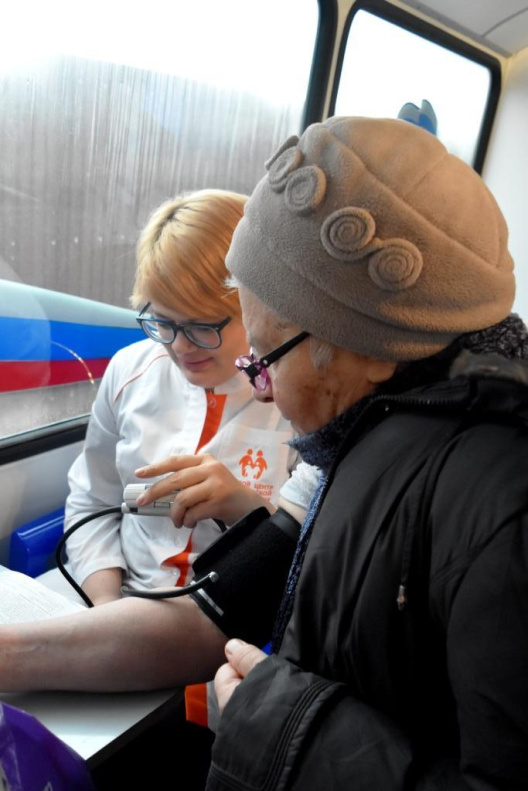 В День борьбы с инсультом на улице Мало-Тобольской в Барнауле работал мобильный центр здоровья