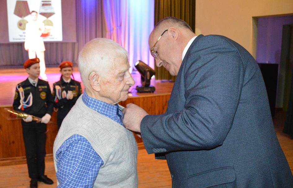 Затем в соответствии с Указом Президента Российской Федерации Владимира Владимировича Путина Юрий Николаевич вручил юбилейные медали «80 лет Победы в Великой Отечественной войне 1941-1945 гг.» несовершеннолетнему узнику фашистских концлагерей Валентине Гавриловне Бурмагиной и труженику тыла Николаю Сергеевичу Ускову.