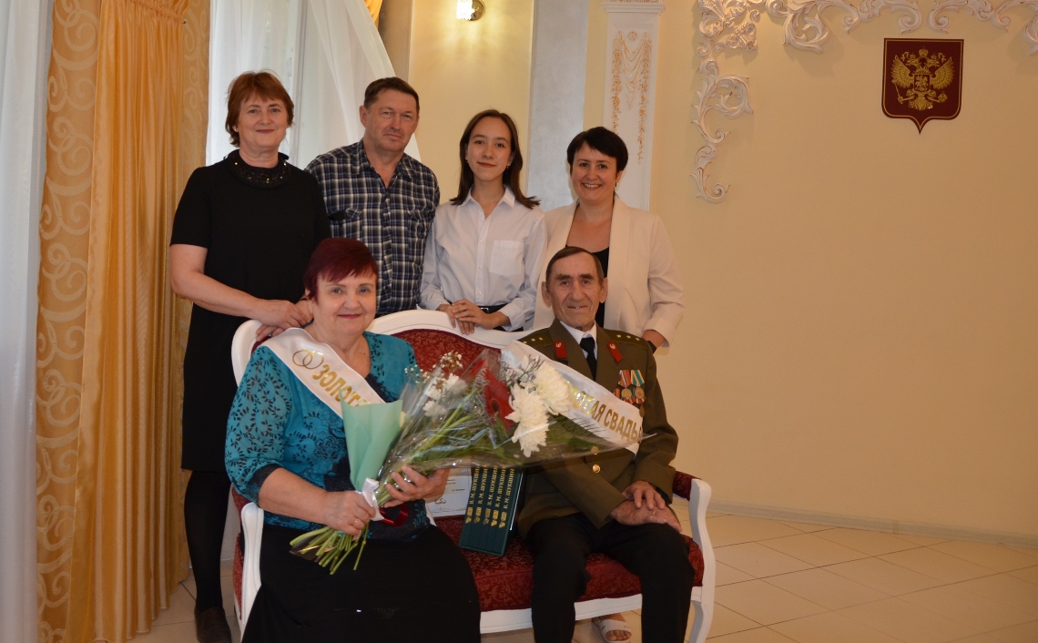 Юбиляры скрепили свой 50-летний семейный союз подписями в Книге регистрации торжественных событий, обменялись золотым кольцами и зажгли символический семейный очаг. Начальник отдела ЗАГС Наталья Шапорева вручила супругам памятный подарок и поздравительный адрес от Губернатора Алтайского края Виктора Томенко. «Золотых» юбиляров поздравил представитель уполномоченного по правам человека в Алтайском крае по Ленинскому району города Барнаула Сергей Краснов.