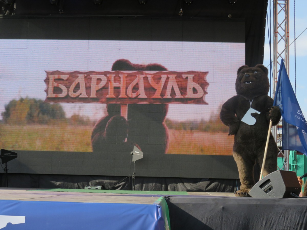 В 2016 году на выставке «Барнаул – туристский» состоялась презентация туристического символа города – Барнаульского Медведя. Он впервые пришел поздравить Барнаул с Днем рождения и рассказал легенду своего появления на туристической эмблеме города. А в 2015 году на праздновании 285-летия города Барнаула, состоялась презентация туристической эмблемы города Барнаула, символом которой стала литера «Б» (Барнаул) и изображение медведя.