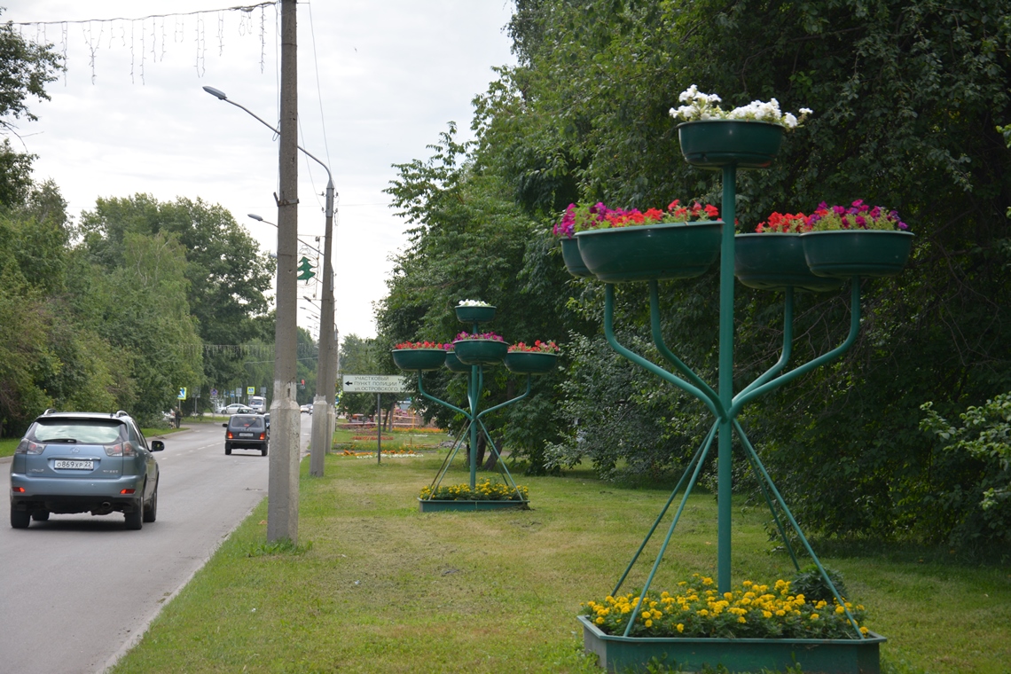 БлагоустройствоВ 2023 году на центральной улице района было установлено 10 вертикальных цветочных конструкций, построены шесть земляных и две капитальные трехъярусные цветочные клумбы из рваного камня.