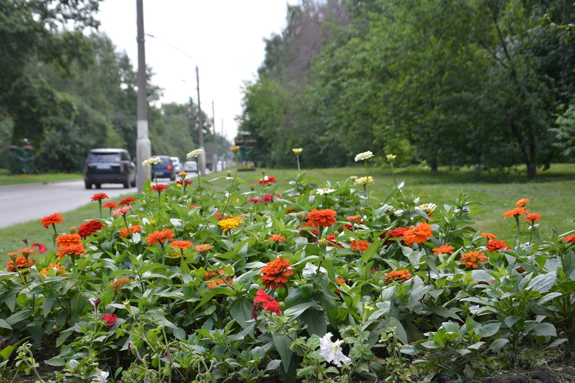 В этом году работы по благоустройству продолжаются. Пять новых земляных клумб появилось на участке от ул.Георгия Исакова, 215 до ул.Георгия Исакова, 229. Цинии и цинерании украсили земляную клумбу на пересечении ул.Островского и ул.Георгия Исакова. Там же, для безопасности пешеходов, было установлено ограждение.