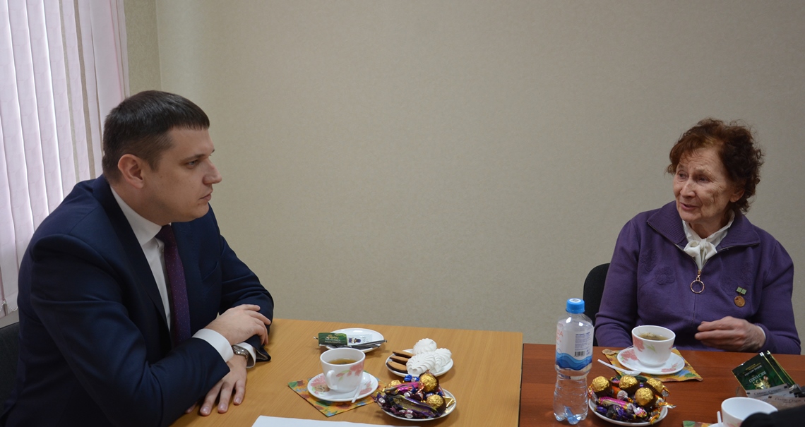 Глава администрации района Евгений Авраменко встретился с бывшими блокадницами: Светланой Михайловной Ерыгиной, Галиной Евтихиевной Ножкиной, Серафимой Алексеевной Бакшеевой, Светланой Васильевной Благодацкой, Галиной Минаевной Надеевой.