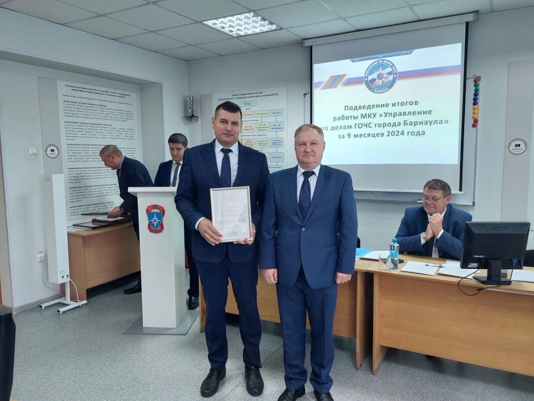 В этом году городскому управлению по делам гражданской обороны и чрезвычайным ситуациям исполнилось 45 лет. Заместитель главы администрации города по защите населения и информации Игорь Лисин наградил трех сотрудников благодарностями главы города за добросовестный труд, большой вклад в обеспечение безопасной обстановки в городе. Также почетными грамотами главного управления МЧС России по Алтайскому краю, управления Алтайского края по делам гражданской обороны, чрезвычайным ситуациям и пожарной безопасности, городского управления ГОЧС было отмечено 15 работников.