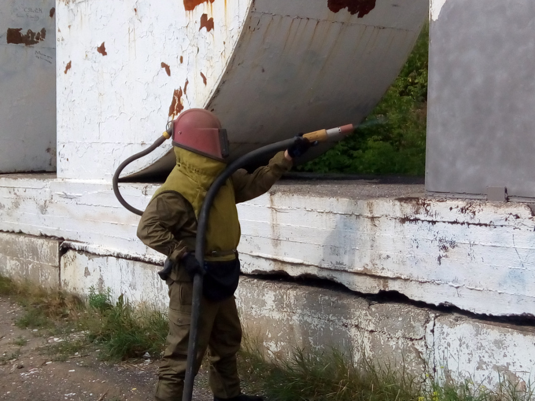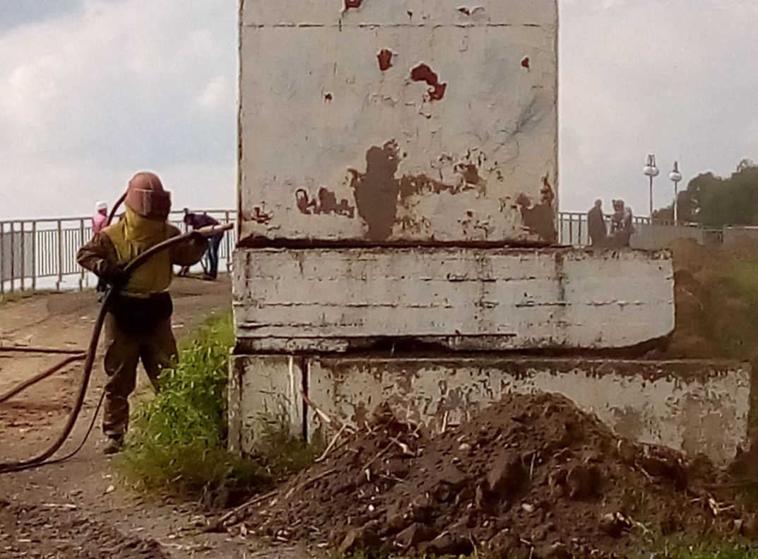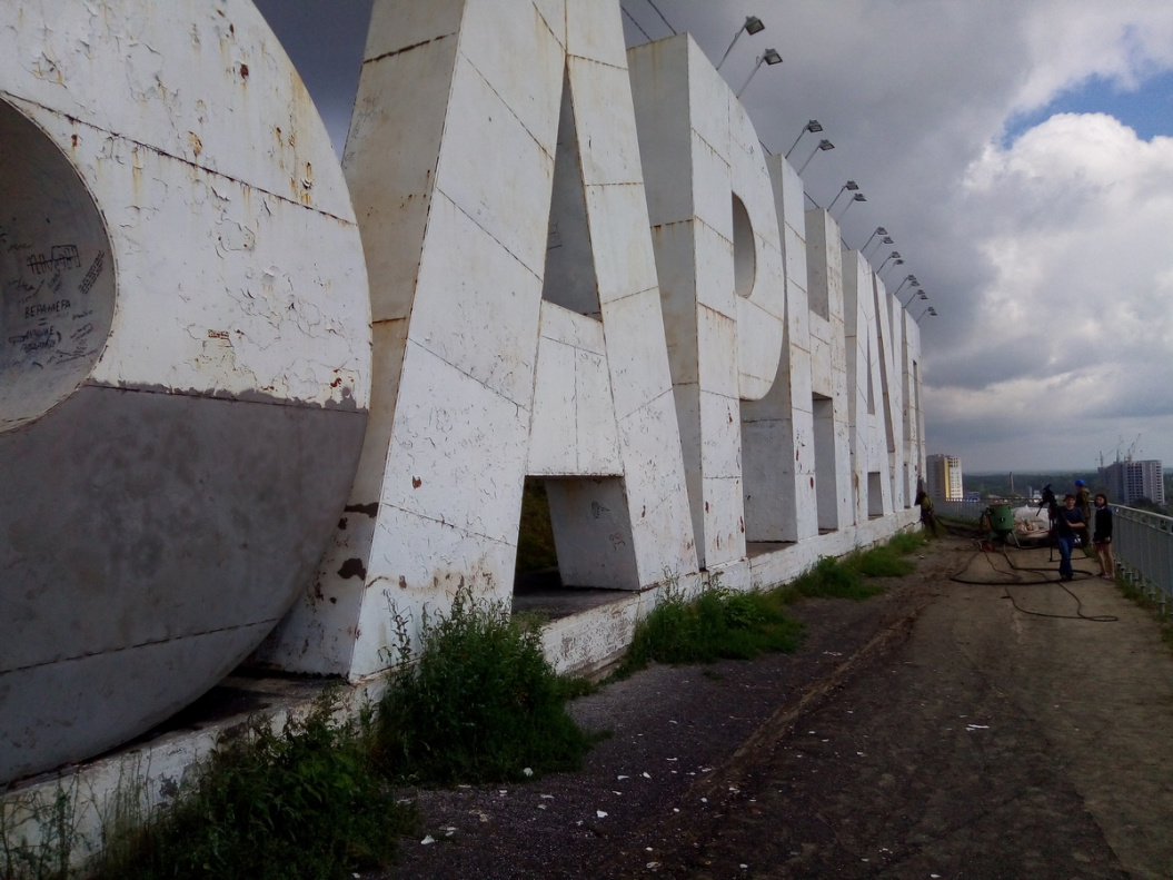По словам начальника участка «СК Русич» Дениса Рязанова, 24 июля производилась очистка металлических конструкций пескоструйным аппаратом, удаление старой краски, сварочные работы, а также замена части конструкций, пораженных коррозией с последующим покрытием их грунтовкой. Также планируется провести антикоррозийную защиту поверхности букв и заново покрасить их.