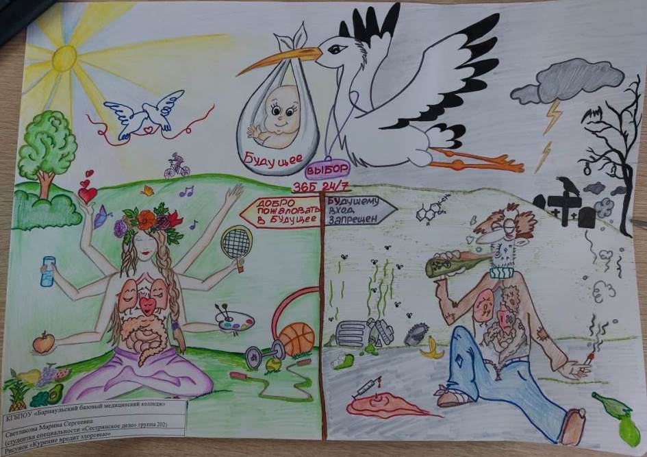 В конкурсе «Молодёжь выбирает здоровое будущее!» в номинации рисунки победителями стали Виктория Макарова (Барнаульский центр помощи детям, оставшимся без попечения родителей, № 1), Валерий Родионов (Барнаульский центр помощи детям, оставшимся без попечения родителей, № 1), Милана Карпова (детский сад №105), Евгения Ларионова (детский сад №105), Арина Таганова (детский сад №89).