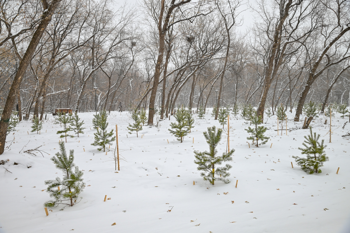Председатель комитета по благоустройству Пётр Воронков отметил, что изначально было принято решение о необходимости проведения масштабных посадок для обновления зеленой зоны. Только в этом году в парке будет высажено 2600 деревьев, в настоящий момент эти работы уже завершаются. Видовой состав новых деревьев разнообразен, в том числе в парке будут высажены лиственницы и ивы, которых ранее здесь не было. Посадки ведутся по разработанном заранее дендроплану. Работы по озеленению не завершатся текущим годом и будут продолжены в следующие годы, на следующих этапах здесь планируется высадить еще порядка тысячи деревьев.