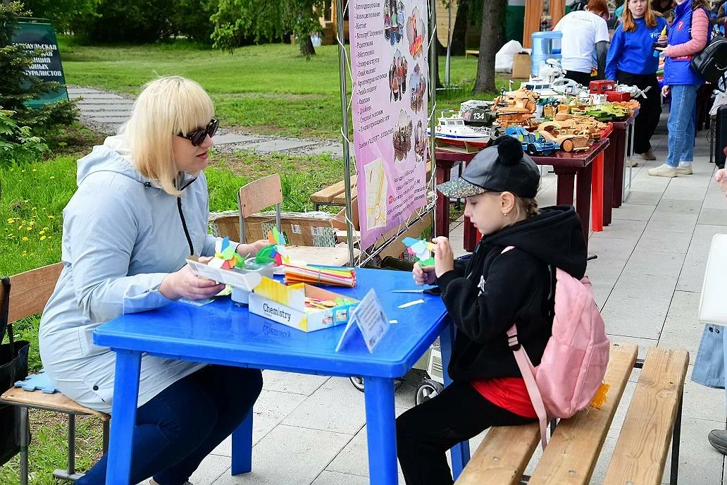 На аллеях парка работали не только мастер-классы и ярмарка, но и познавательные выставки: например, воспитанники Центра детского (юношеского) технического творчества Ленинского района представили модели техники из дерева, металла и других материалов. Барнаульская городская станция юных натуралистов привезла игротеку «Ребятам о зверятах» и самих зверят: кролика, ежа, песчанку, красноухих черепах.