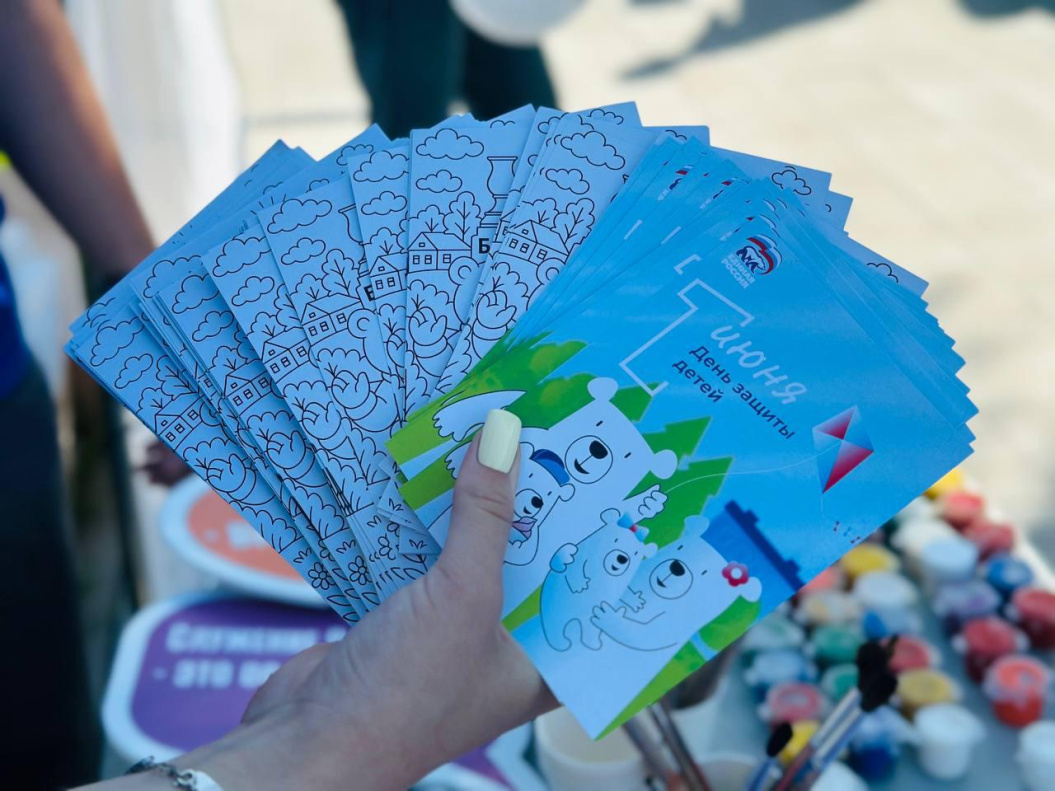 Праздничная площадка стала центром веселья и творчества, где каждый желающий мог раскрасить гигантскую раскраску, сфотографироваться с ростовой анимационной куклой мишкой. Кроме того, все дети получили в подарок праздничную открытку-раскраску и воздушный шарик.