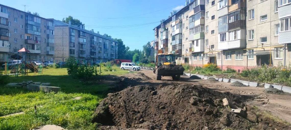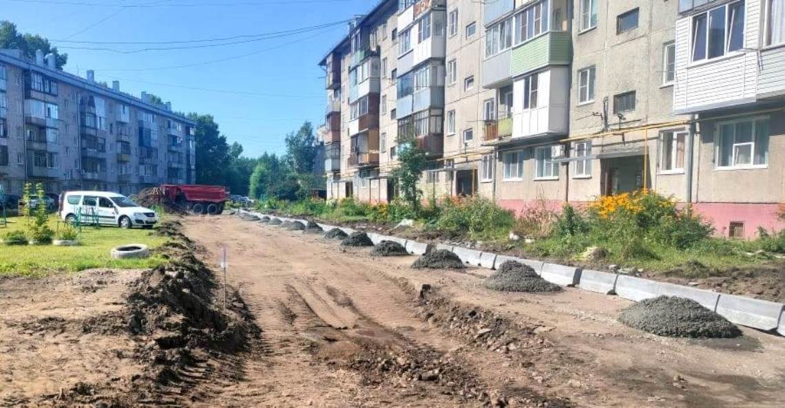 На сегодняшний день здесь выполняется установка бордюрного камня. Далее планируется провести асфальтирование и расширение проезда, асфальтирование тротуаров и предподъездных площадок, обустройство парковки, установку детской площадки с каруселью, детского спортивного комплекса, скамеек, урн, ограждения и освещения.