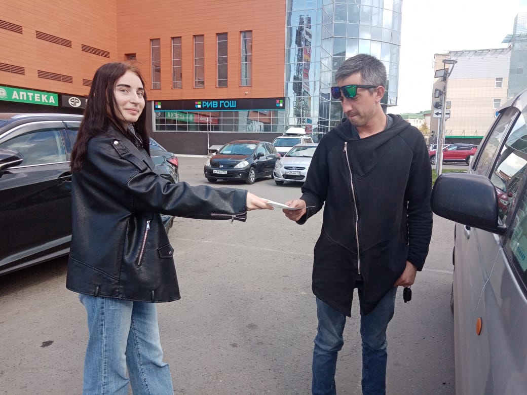 Эко-волонтеры на пяти площадках города проинформировали автомобилистов о влиянии на загрязнение атмосферного воздуха выхлопных газов, отходящих от транспорта, а также вручили участникам листовки о способах снижения негативного воздействия автомобиля на окружающую среду.