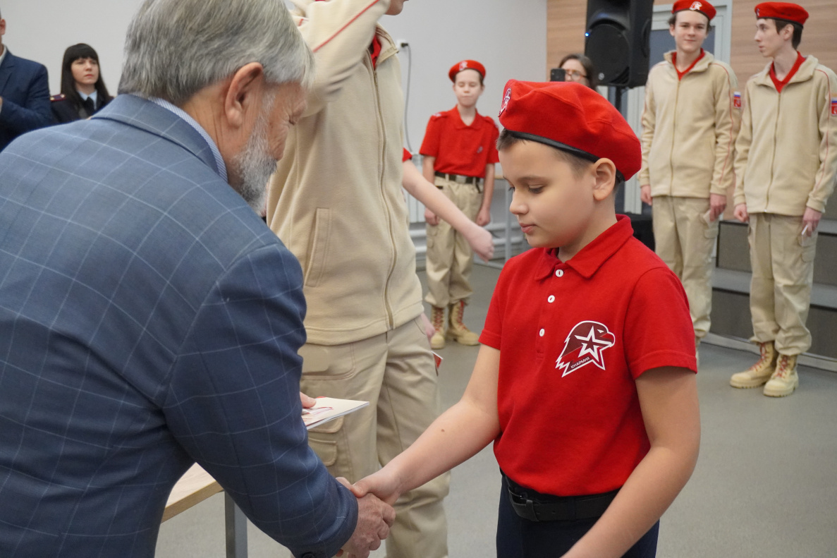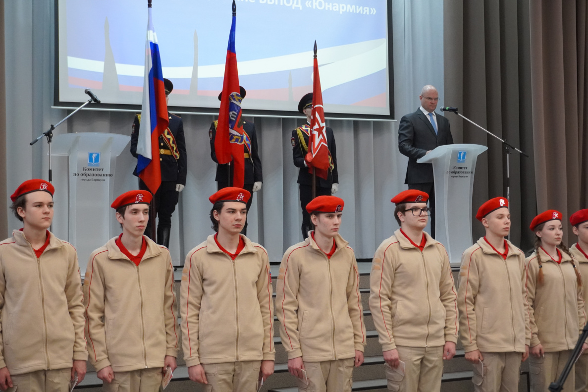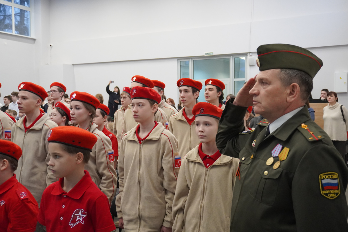 Для вступления в ряды юнармейского движения и принятия торжественной клятвы были построены 20 учеников. Рапорт о готовности к принятию клятвы сдал заместитель начальника штаба Барнаульского отделения движения «Юнармия» капитан Александр Панов. Принял рапорт начальник штаба Александр Николайчик. Всем ребятам вручили юнармейские книжки и значки, некоторым – благодарности за добросовестное отношение к учебе, высокие показатели, проявленный патриотизм и активную гражданскую позицию.