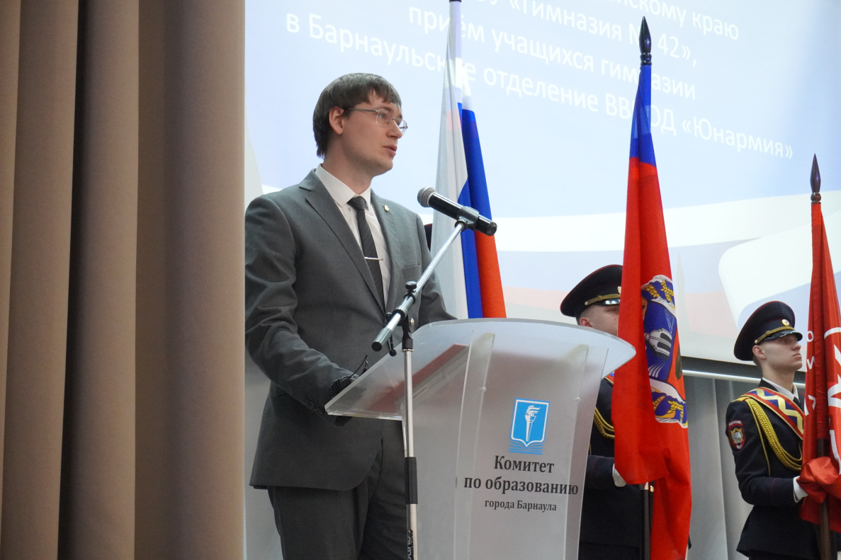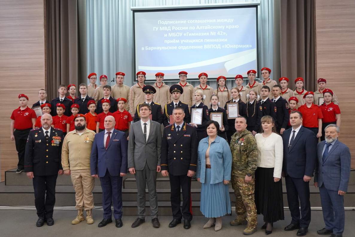Сегодня в Барнауле прошло мероприятие, посвященное подписанию соглашения между гимназией №42 и ГУ МВД России по Алтайскому краю и приему учащихся гимназии в Барнаульское отделение ВВПОД «Юнармия».