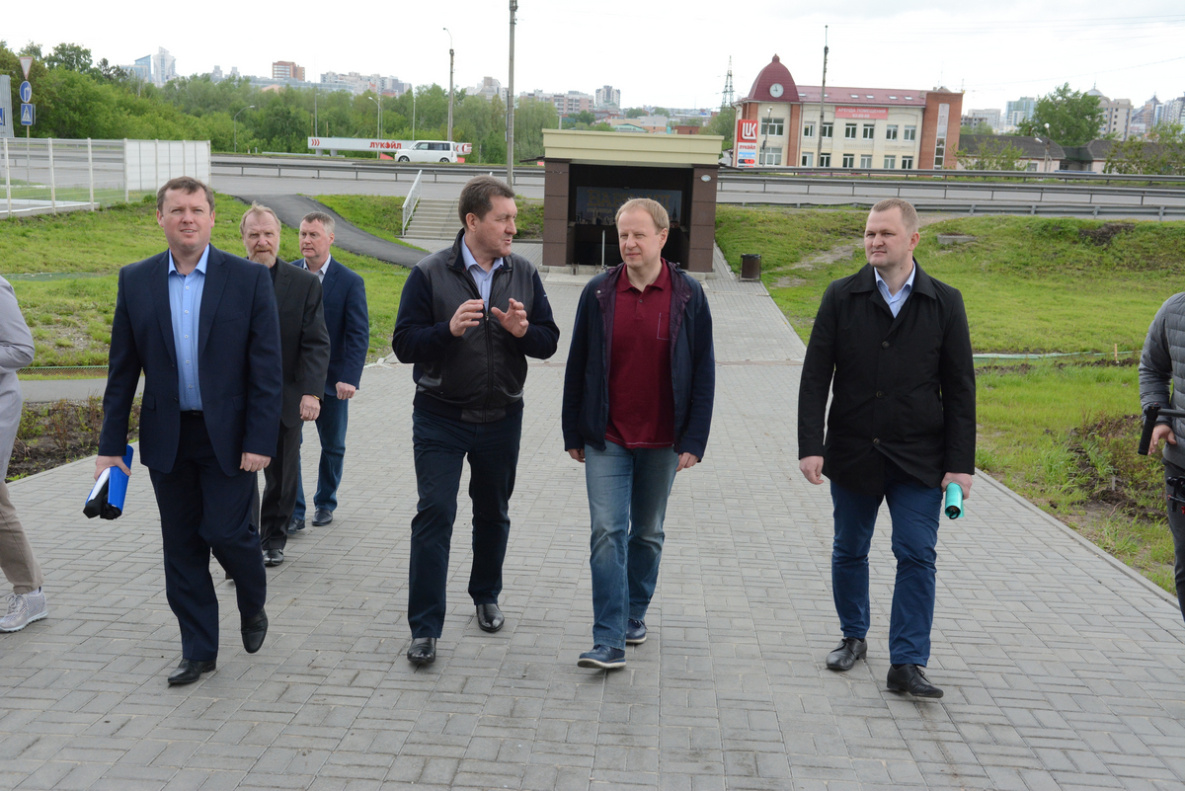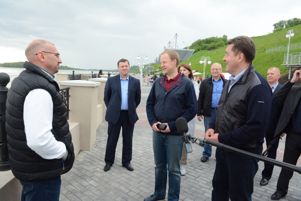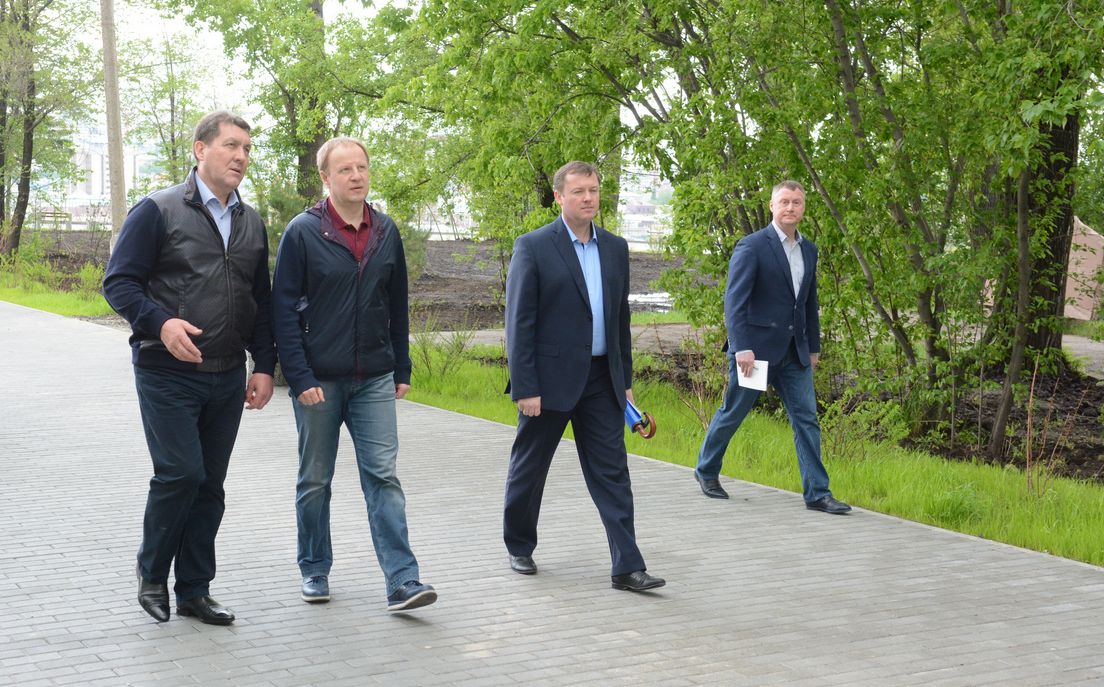 Поднявшись по лестнице, ведущей в Нагорный парк, Виктор Петрович и Сергей Иванович прошли по мощеной аллее, оценили результаты проведенного благоустройства парковой территории. Всего с начала работ в 2017 году на центральной аллее и пешеходной дорожке (по краю территории парка) уложено почти 4 800 кв. м. плиточного покрытия, установлено 350 м чугунного ограждения и 41 опора освещения, высажено более 160 декоративных и хвойных деревьев, 685 кустарников.