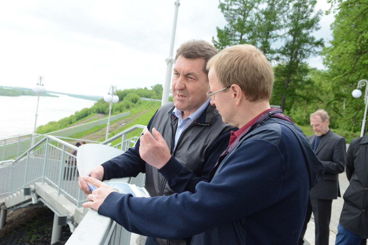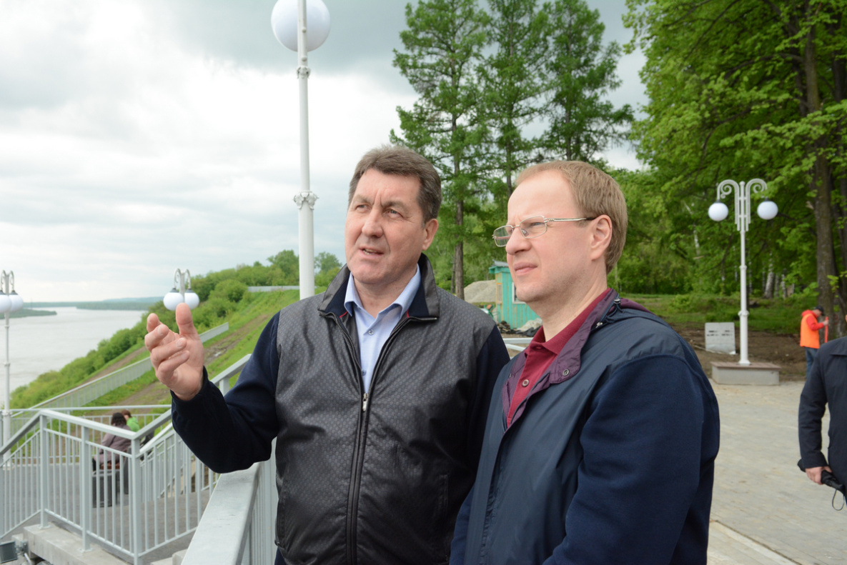 Задержавшись на смотровой площадке парка, с высоты которой открывается вид на Обь и город в целом, Сергей Дугин рассказал о завершении работ на барнаульской набережной.