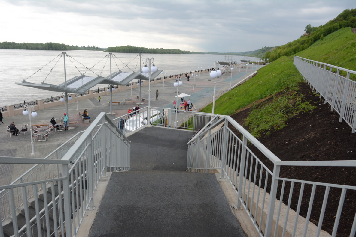 В этом году благоустройство Нагорного парка будет продолжено – предстоит озеленение территории на противоположной стороне от центральной аллеи, укладка плитки на внутренних пешеходных дорожках, устройство парковочной площадки для автомобилей, ограждение верхнего яруса склона до второй лестницы, соединяющей парк с набережной.