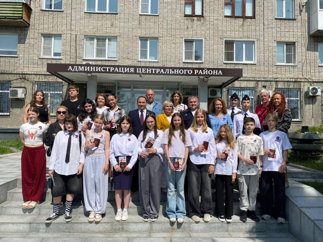 В администрации Центрального района паспорта получили 12 барнаульских школьников. С этим событием, а также с наступающим Днём России школьников поздравили заместитель главы администрации Центрального района Мария Тибекина, депутаты Барнаульской городской Думы Елена Азарова и Павел Авкопашвили, заместитель начальника отдела по вопросам миграции отдела полиции по Центральному району УМВД России по г.Барнаулу Вадим Малахов. В подарок школьникам и их родителям творческие номера подготовил вокальный ансамбль «Виват» Барнаульского юридического института МВД России.