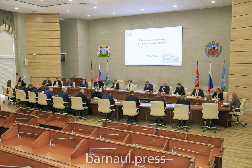 Сегодня в администрации города прошло совещание по подготовке к празднованию Дня России в Барнауле. Совещание провел глава города Вячеслав Франк. В нем приняли участие председатель Барнаульской городской Думы Галина Буевич, заместители главы администрации города, руководители администраций районов, профильных комитетов, ГУМВД России по г.Барнаулу.