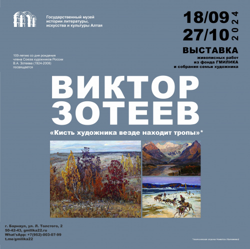 18 сентября в 15.00 в Государственном музее истории литературы, искусства и культуры Алтая открывается выставка Виктора Зотеева «Кисть художника везде находит тропы».