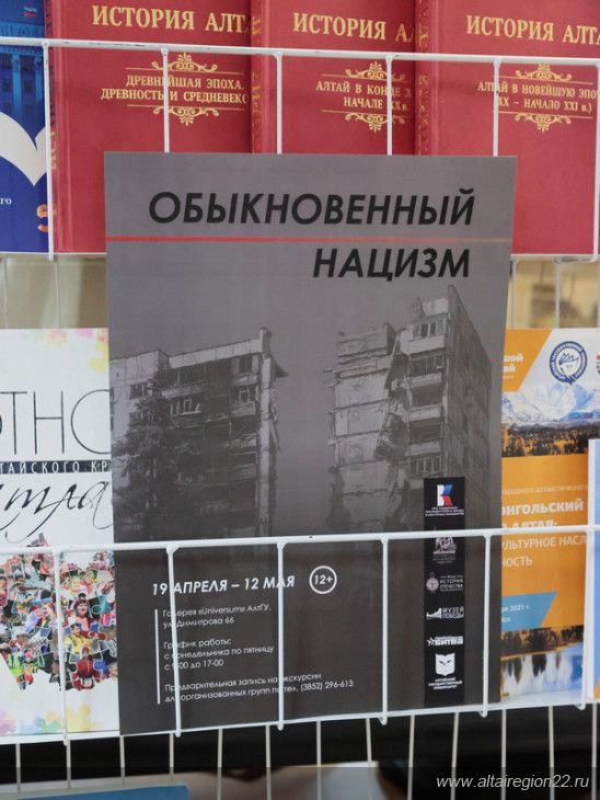 Выставка служит сохранению исторической памяти о героизме российских военнослужащих и защитников Новороссии. «Обыкновенный нацизм» будет экспонироваться в галерее «Универсум» Алтайского государственного университета (улица Димитрова, 66) по 12 мая.