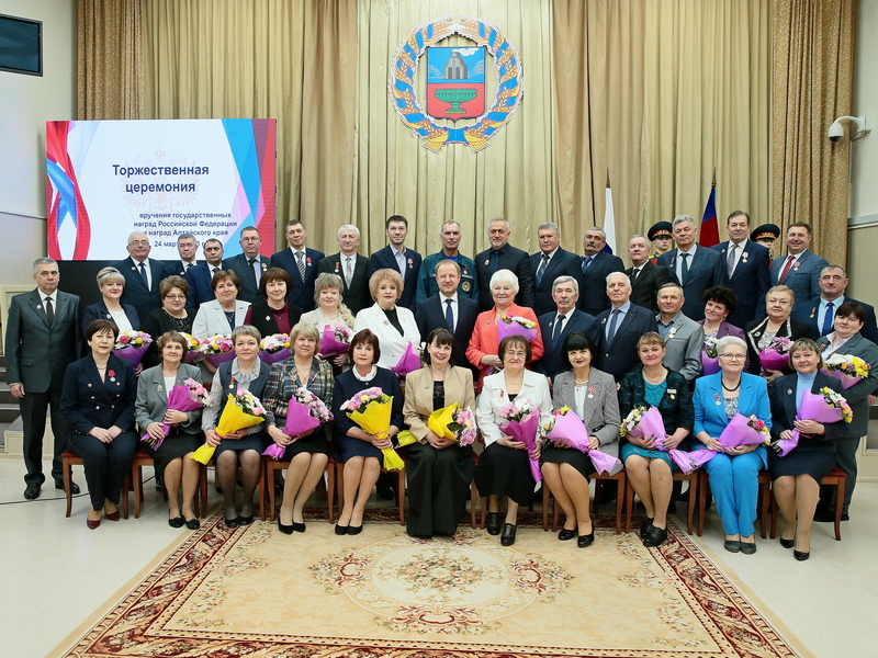 На торжественной церемонии в Правительстве Алтайского края 41 жителю региона вручены государственные награды Российской Федерации и награды Алтайского края. Эта первое масштабное вручение госнаград в 2023 году.