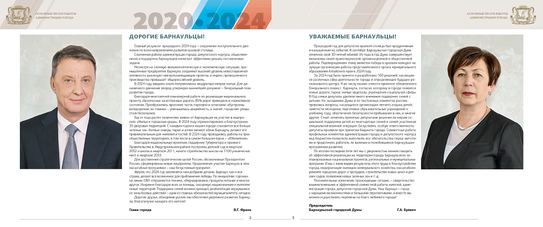 В рубрике размещаются основные итоги работы администрации города Барнаула за 2024 год.