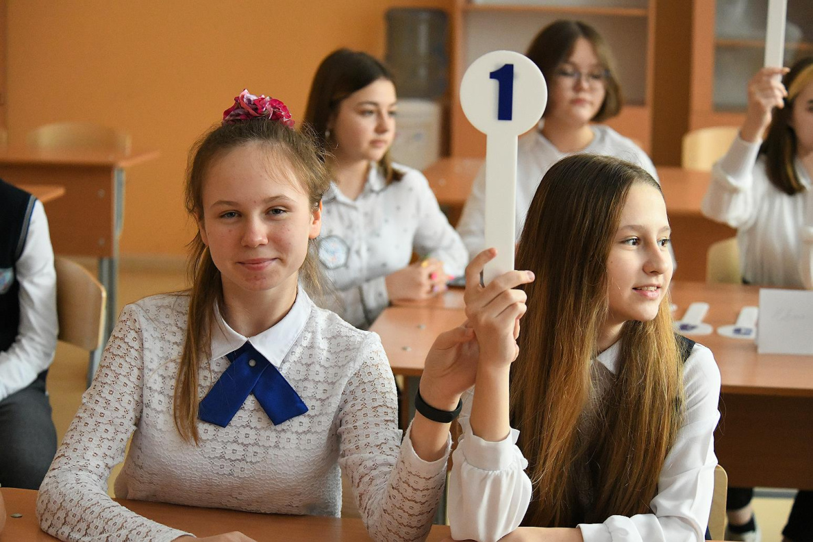 1 февраля прошла интеллектуальная игра по избирательному праву "Звездный час", а также открытие КМИ в МАОУ "СОШ №136"