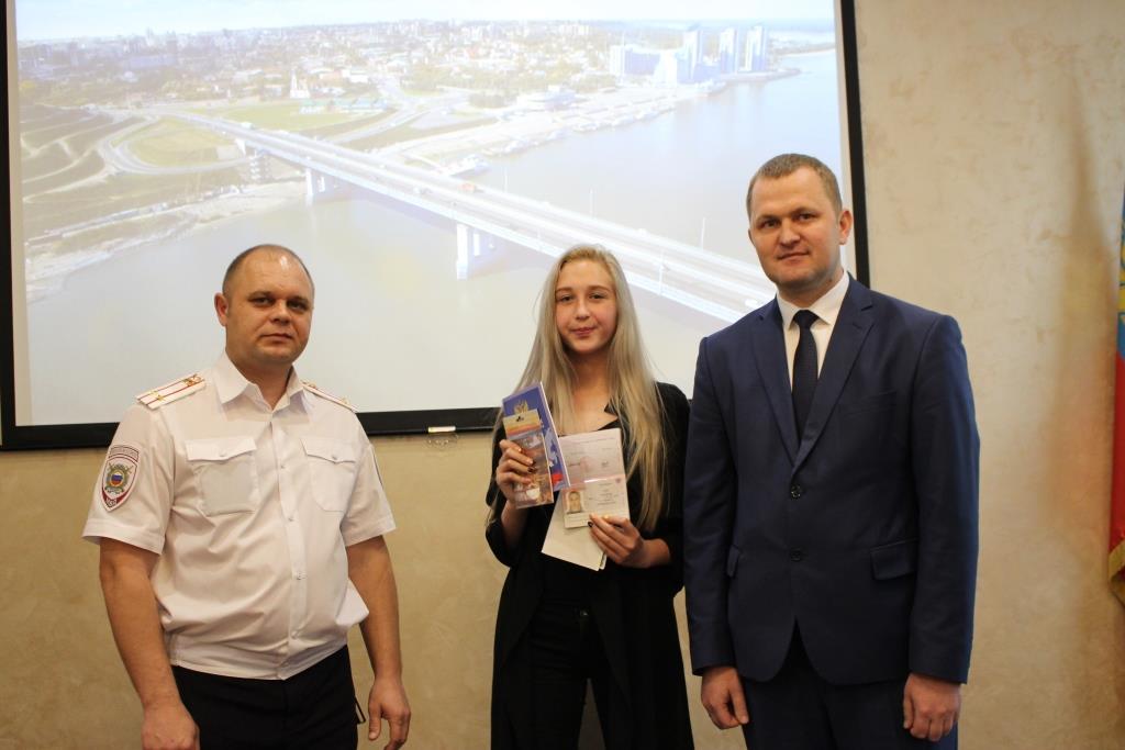 Максим Сабына, глава администрации Центрального района, и Виталий Гилев, начальник отдела по вопросам миграции отдела полиции по Центральному району УМВД России по г. Барнаулу, вручили 14-летним девушкам и юношам первый паспорт и Конституцию РФ. Максим Николаевич пожелал юным барнаульцам стать достойными гражданами своей страны, продолжать добрые традиции своих семей и дальнейших успехов.