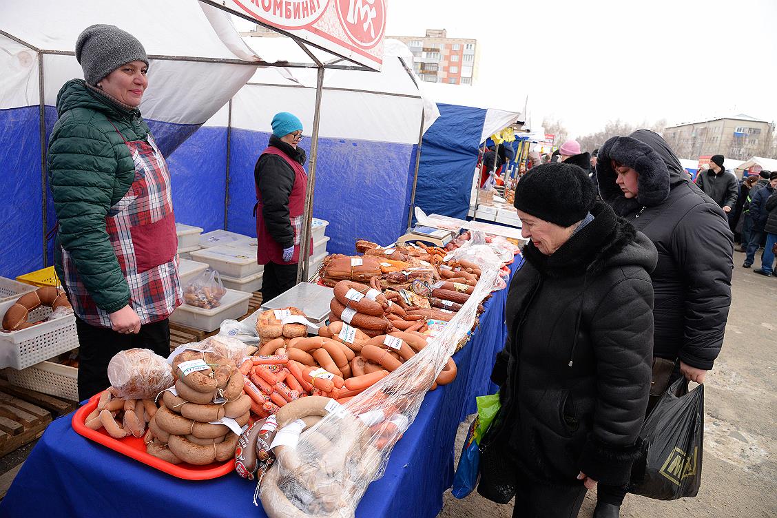 В минувшую субботу, 22 февраля, в Барнауле прошли первые в этом году продовольственные ярмарки. Предприятия переработки, крестьянские и фермерские хозяйства, оптово-розничные предприятия из городов и районов Алтайского края представили свою продукцию по сниженным ценам на шести площадках. В ассортименте ярмарок: мясо, рыба, колбасы, полуфабрикаты, масло, яйца, кондитерские изделия, мука, сахар, овощи, фрукты и другое.