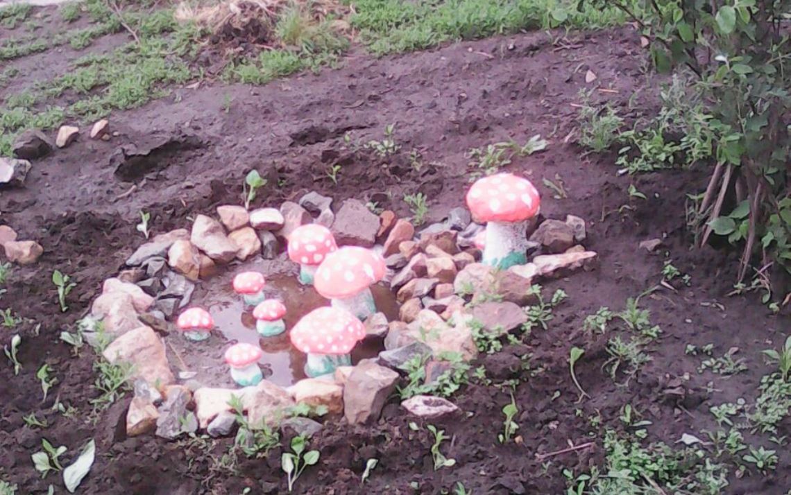 Жители микрорайона «Островский» у дома по ул.Островского,4 под чутким руководством активиста ТОС Любови Глебовой установили малые архитектурные формы «Грибы».
