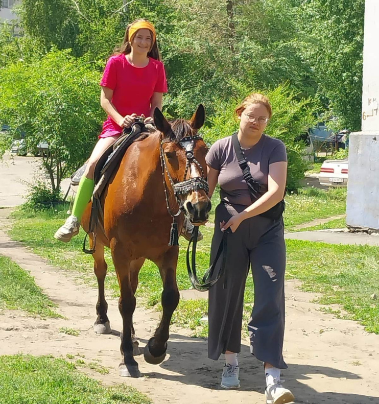 На площадке дома по ул.Веры Кащеевой, 23/1 дети и взрослые с удовольствием приняли участие в игровой программе. Для ребят в качестве угощения были приготовлены конфеты и лимонад. Настоящим сюрпризом для всех всех стало катание на лошадях, которых пригласили из приюта «Ласка».