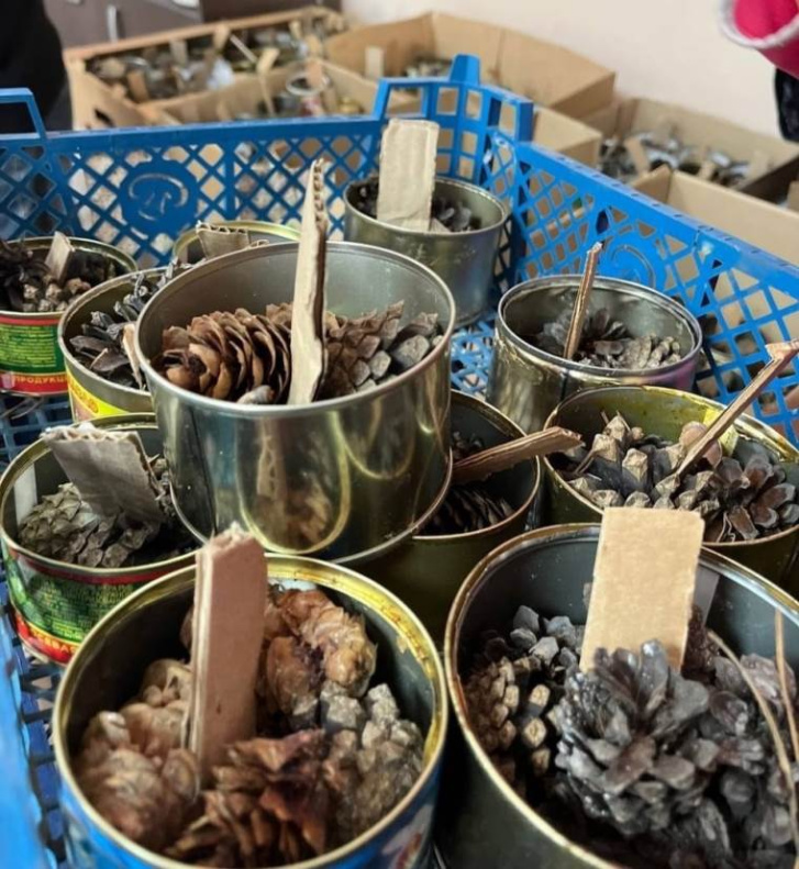 Благодаря неравнодушным жителям посёлка, которые собрали денежные средства, было закуплено 120 кг парафина. Он был нарезан, расплавлен и залит в банки, в которые ранее были уложены еловые и сосновые шишки.