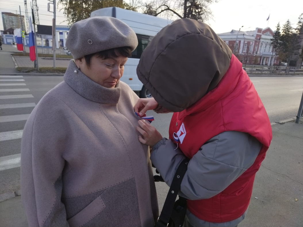 В рамках празднования Дня народного единства прошли акции по раздаче ленточек триколор.